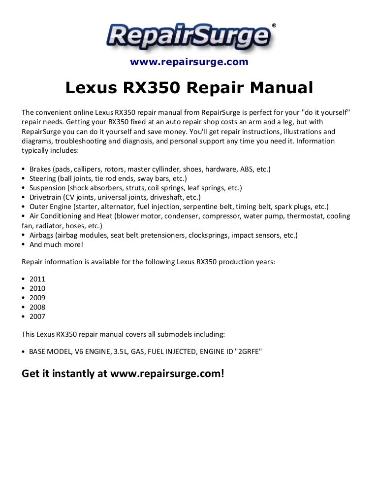 Lexus Rx350 Repair Manual 2007 2011